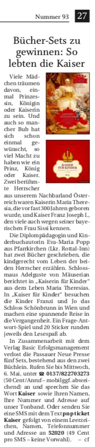 Schlossmaus Adelguste von Mäuserian erzählt aus dem Leben der berühmten Herrscherin Maria Theresia, die vor 300 Jahren geboren wurde und Pädagogin Eva-Maria Popp hat die interessanten Geschichten aus der Geschichte für die kleinen Leserinnen und Leser aufgeschrieben.