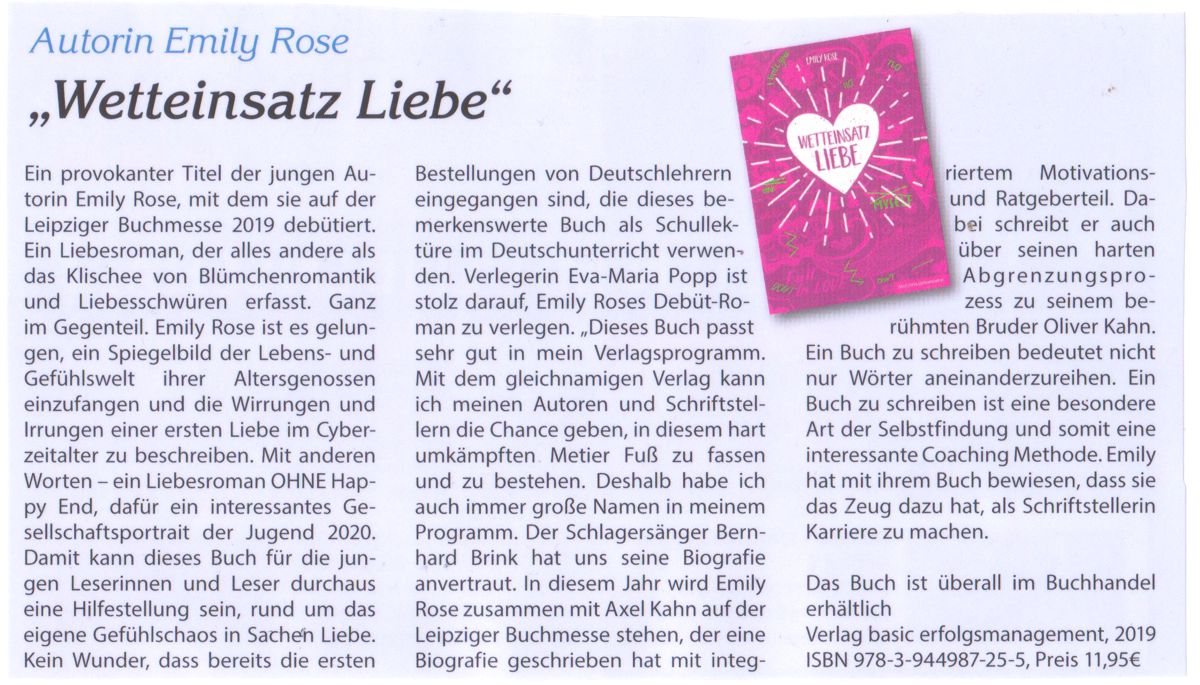 Wetteinsatz Liebe ist ein Buch, das die Verwirrungen und Irrungen junger Menschen sehr spannend und ehrlich wiedergibt. Hautnah werden die Leser förmlich in den Sog der spannenden Handlung gezogen. Wo sind die Grenzen? Ist es Liebe oder einfach nur Sex? Ist es Gefühl oder Berechnung? Ist es Spiel oder bitterer Ernst? Was ist Wahrheit? Wer gewinnt dieses Spiel um die Gefühle? Kann es ein Happy End geben?