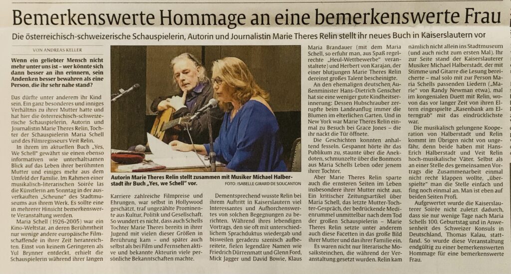 - WDR 5 (14.01.2026): Marie Theres Relin – Über ihre Mutter Maria Schell